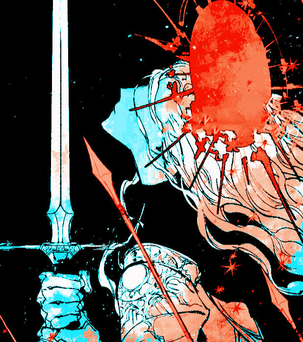 NOTABLE TRAITS: bright red hair / shining blade / heavy steps / loud laughter / gravely voice.